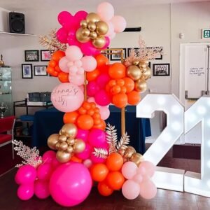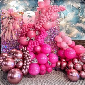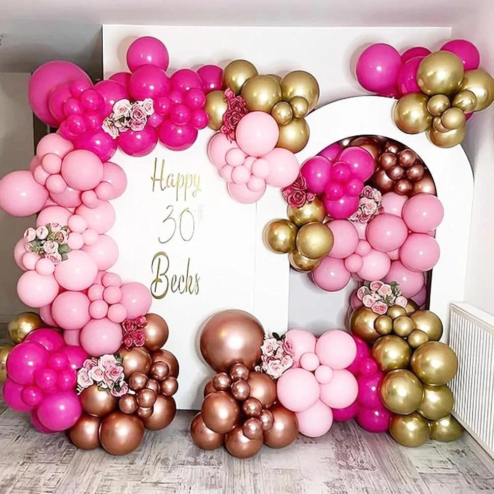 Make your celebrations unforgettable with this 134pcs balloon set featuring soft pink, elegant rose gold balloon garland, and vibrant hot red balloons. Perfect for a girl birthday party, this pink balloons arch kit creates a dreamy backdrop for photos and décor. Use it for princess theme balloons, weddings, engagements, or as a baby shower balloon decoration. Easy to assemble, this balloon garland kit is a must-have for birthday party supplies and glamorous wedding party balloons.
