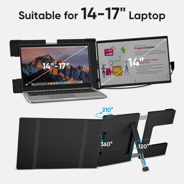 💻【Portable Laptop Screen Extender for Productivity】Due to a decent size, detachable and foldable design, Dopesplay 14.1″ triple laptop screen extender offers you fits easily into your travel backpack. Easy to carry and install. The vertical/ horizontal screen positions provide more convenience for your daily work. A must have for work travel if you are used to multiple screens.