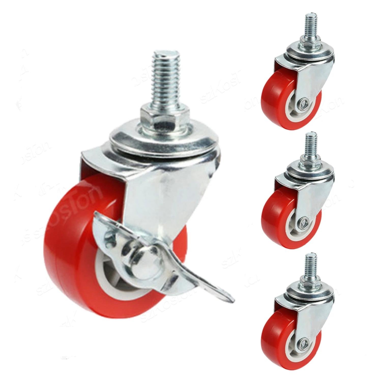 4PCS Threaded Stem Swivel Caster Wheels M8 Mount, 1” to 2” Heavy-Duty Wheels