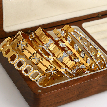 AENSOA Trend Charm Bangle Bracelet 18K Gold-Plated Stainless-Steel Statement Jewelry