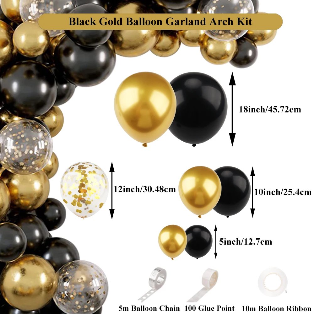 Black Gold Metallic Balloon Arch Kit for Birthday Party Wedding Baby Shower Decoration