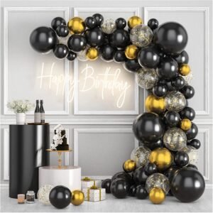 Celebrate in style with this elegant black gold balloon arch featuring high-quality metallic balloons decoration. Perfect for birthday party balloons for boys and girls, this arch also works beautifully for weddings, anniversaries, and showers. Whether you’re decorating for a baby shower balloon decoration, graduation, or elegant event, this event balloon garland creates a stunning backdrop. A must-have for wedding party supplies, adult party balloons, and family party supplies.