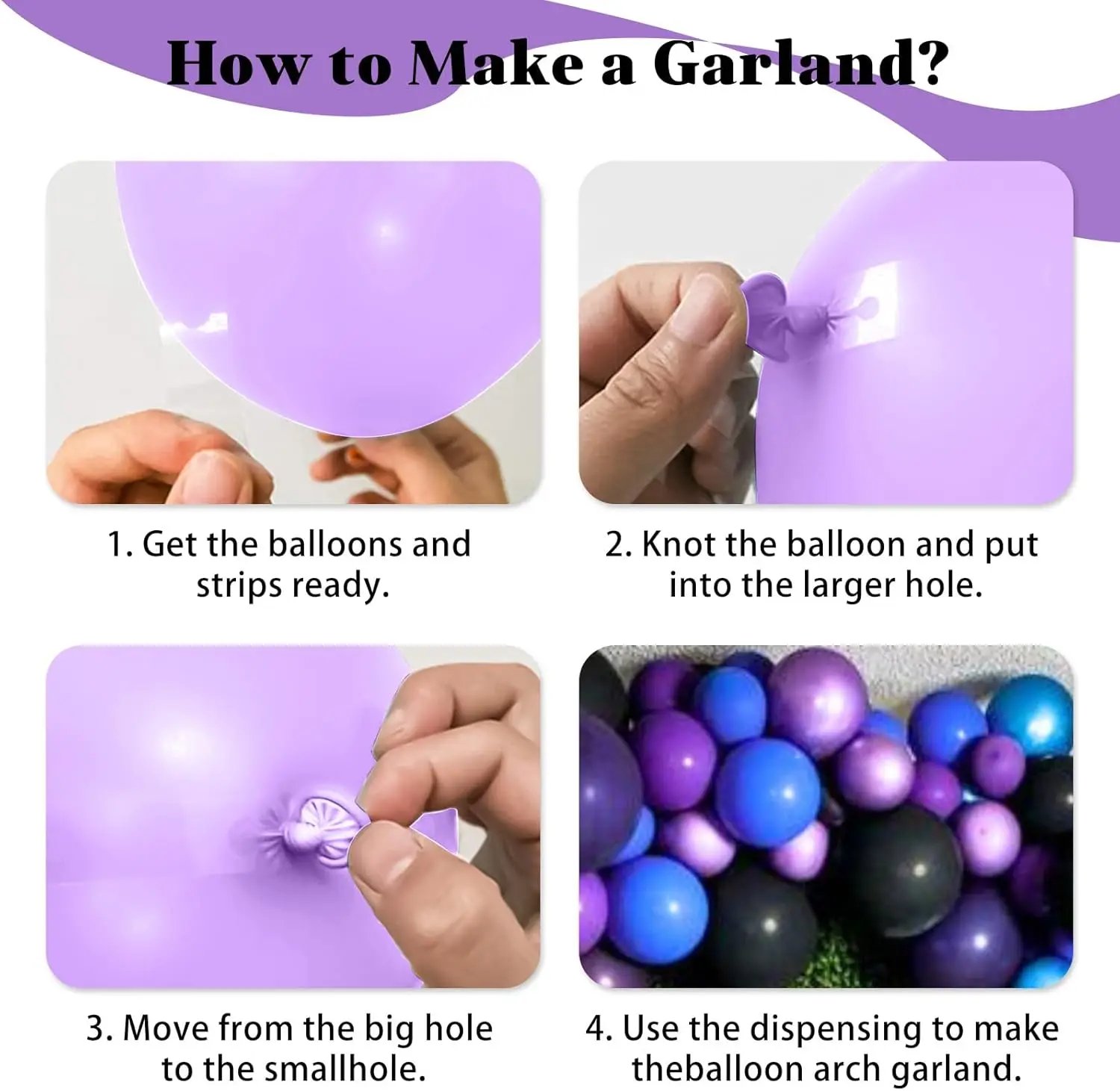 Add elegance and charm to your celebration with this blue purple balloon arch set, featuring a mix of purple and light blue balloons. Perfect for birthday party balloon decoration, this versatile balloon arch decoration kit also suits weddings, baby showers, and other festive events. Easy to assemble, the garland creates a stunning party backdrop balloons display that enhances any venue. A must-have among event party supplies, this purple blue balloon set brings a dreamy touch to your theme party balloon garland.