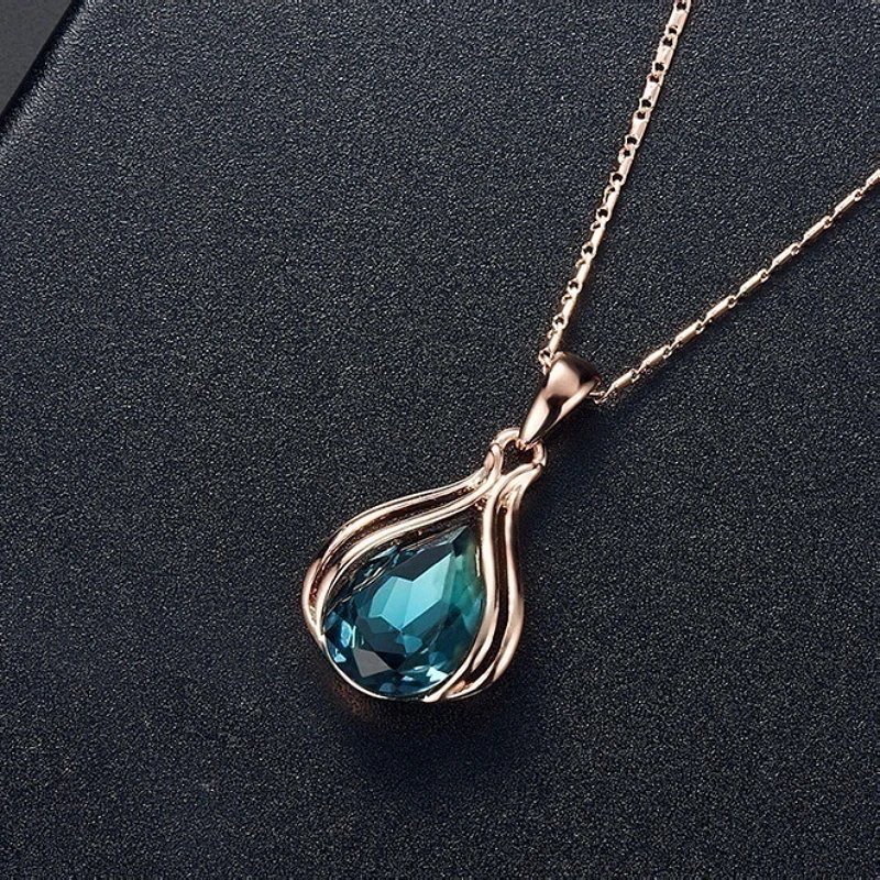 Blue Zhihai Creative Water Drop Earrings and Necklace Set Chic Geometric Bridal Jewelry