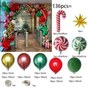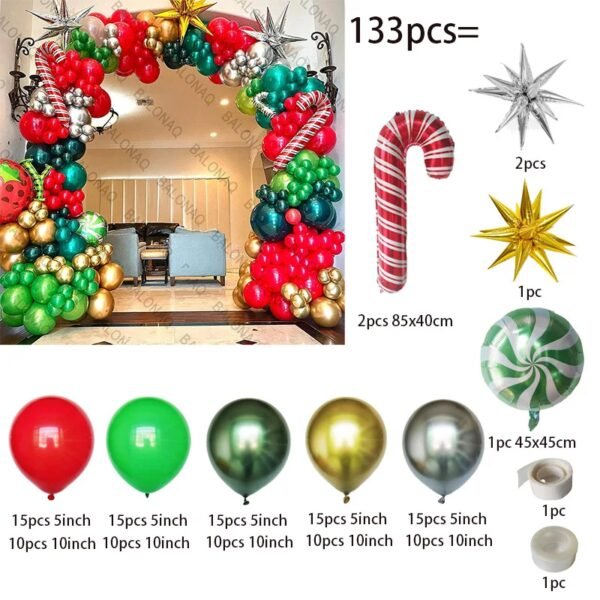 Celebrate the season with this festive Christmas balloons set, featuring a mix of red and green balloons, shiny metallic gold Christmas balloons, and elegant white balloons decoration. Perfect for creating a magical Christmas balloon garland, this kit doubles as a stunning Christmas party balloon arch or New Year balloon decorations. Whether for family gatherings, office parties, or holiday events, this holiday balloon arch kit adds charm and joy to your venue. A must-have in your Christmas party supplies collection for unforgettable memories.