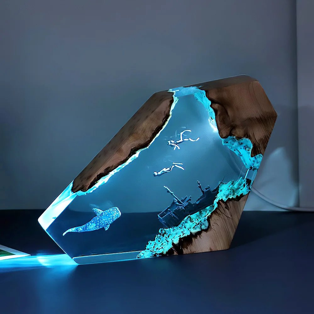 Dive into creativity with this ocean-themed epoxy resin night lamp, an ideal custom gift and glowing bedroom or office accessory. The luminous base gently lights up intricate marine details within the epoxy resin, making this artistic tabletop lamp perfect for nightstands, desktops, or display shelves. Whether you’re redecorating or looking for a one-of-a-kind gift, this piece delivers a unique blend of handmade craftsmanship and ambiance.