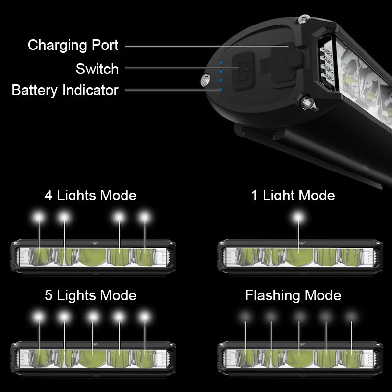 4 Modes: Near full light; High beam bright; Near light; Far and Flashing