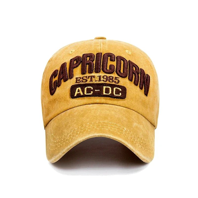 Fashionable ‘CAPRICORN’ Alphabet Embroidered Baseball Cap Unisex Distressed Sport Hat for Outdoor Adventures