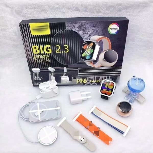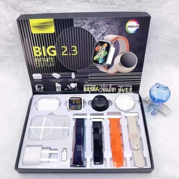 Stay connected and in control with the H96 Smart Watch for men, a multifunctional smartwatch designed for health, sport, and lifestyle. This 6-piece set includes a smartwatch, Bluetooth earphones, and additional accessories, making it the perfect all-in-one wearable solution. With heart rate and blood pressure monitoring, a long endurance battery, and sports tracking modes, it helps you stay fit and productive. Stylish and durable, the H96 smartwatch is ideal for workouts, office use, and daily wear.