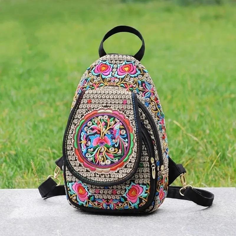 Embrace your unique style with our handmade embroidered canvas backpack. This small women’s ethnic rucksack is perfect for travel, daily use, or as a multifunctional shoulder and chest bag. Featuring exquisite handmade embroidery, this canvas knapsack showcases traditional craftsmanship with a modern twist. The compact design offers practicality, while the vibrant patterns add a bohemian flair to your outfit. Perfect for women who love to combine function with fashion.