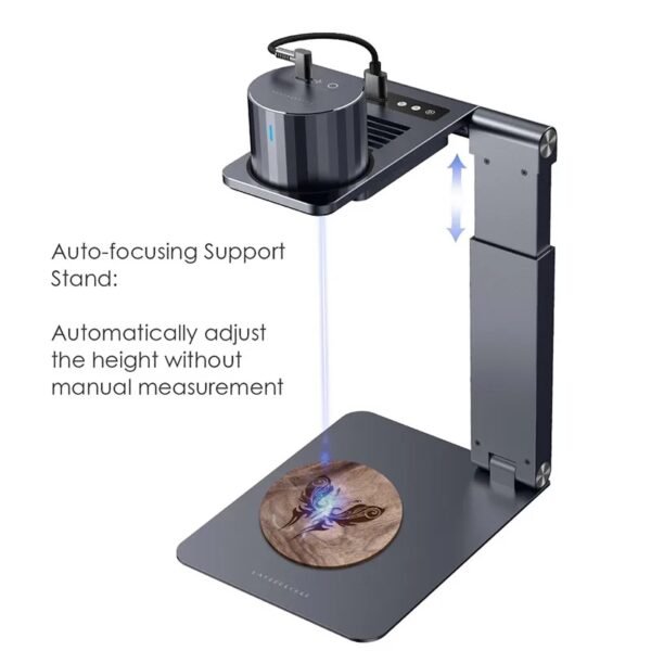 LaserPecker Pro is upgraded with an auto-adjusting support stand. All you have to do is put the engraving target on the spot.The built-in sensors of the stand will measure the distance between the laser generator and the target and automatically adjust the height to make sure the focal point is the correct distance from the surface of the object.