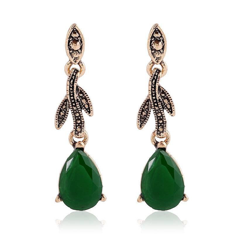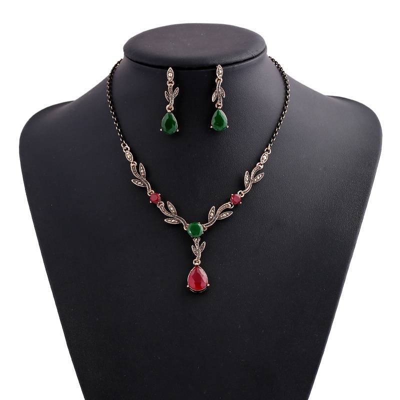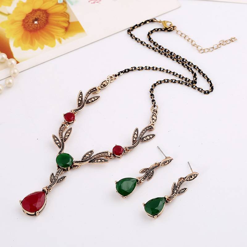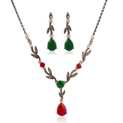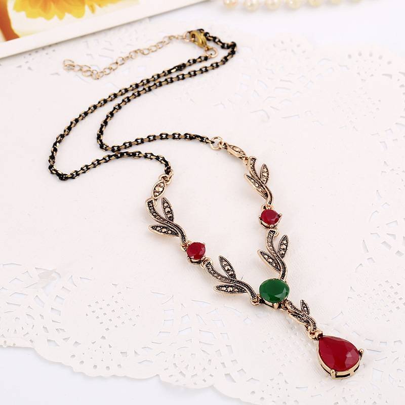 Leaf water drop resin gemstone pendant necklace