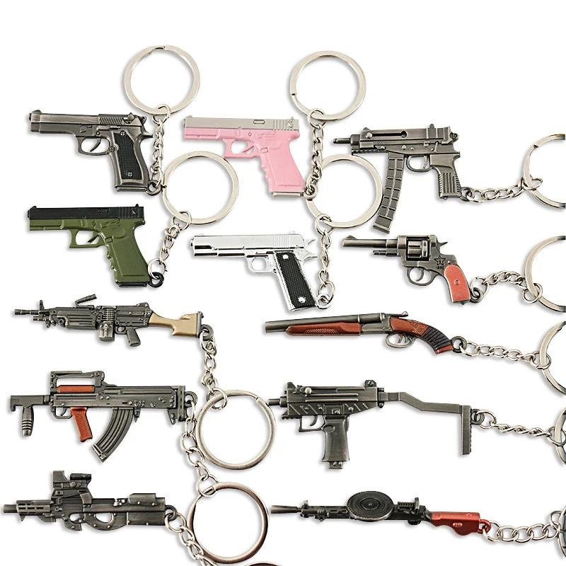 Miniature Gun Pendant Keychain Metal Weapon Model Jewelry for Gamers