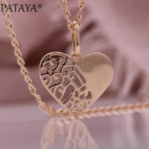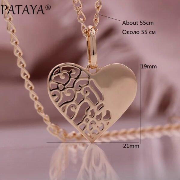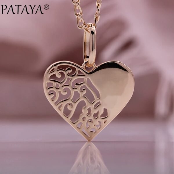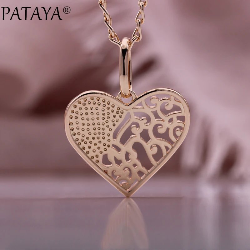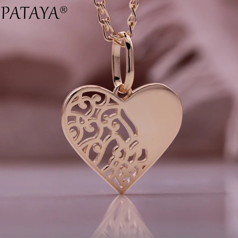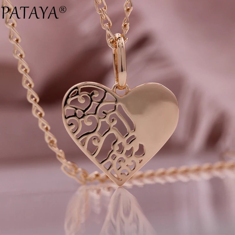 PATAYA 585 Rose Gold Color Heart-Shaped Hollow Pendant Necklace Luxury Women Jewelry Gift