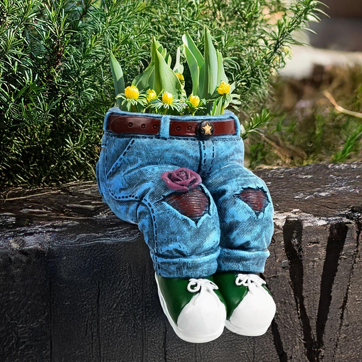 Resin Pants Flower Pot Statue Decorative Jeans Planter for Indoor and Outdoor Succulents