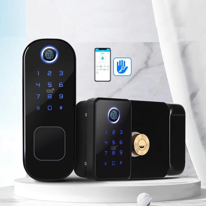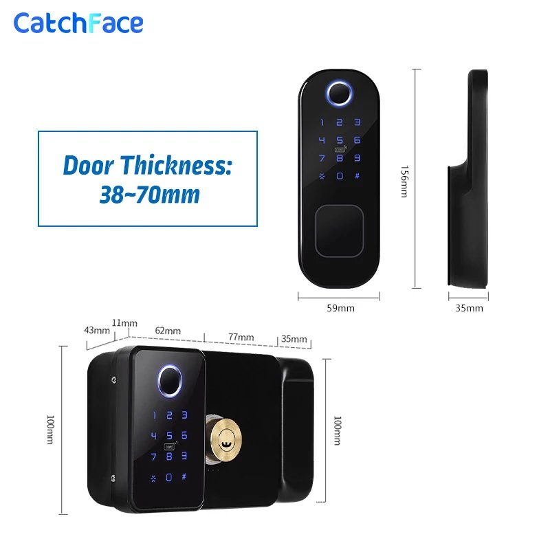 Secure your property with the Smart Door Lock featuring dual-side fingerprint access. Designed with an IP66 waterproof rating, it withstands all weather conditions. Connect to the TTLock App via Bluetooth for remote access and control. Use the RFID card, passcode, or physical key for multiple unlocking options. Ideal for residential homes, offices, and industrial gates.