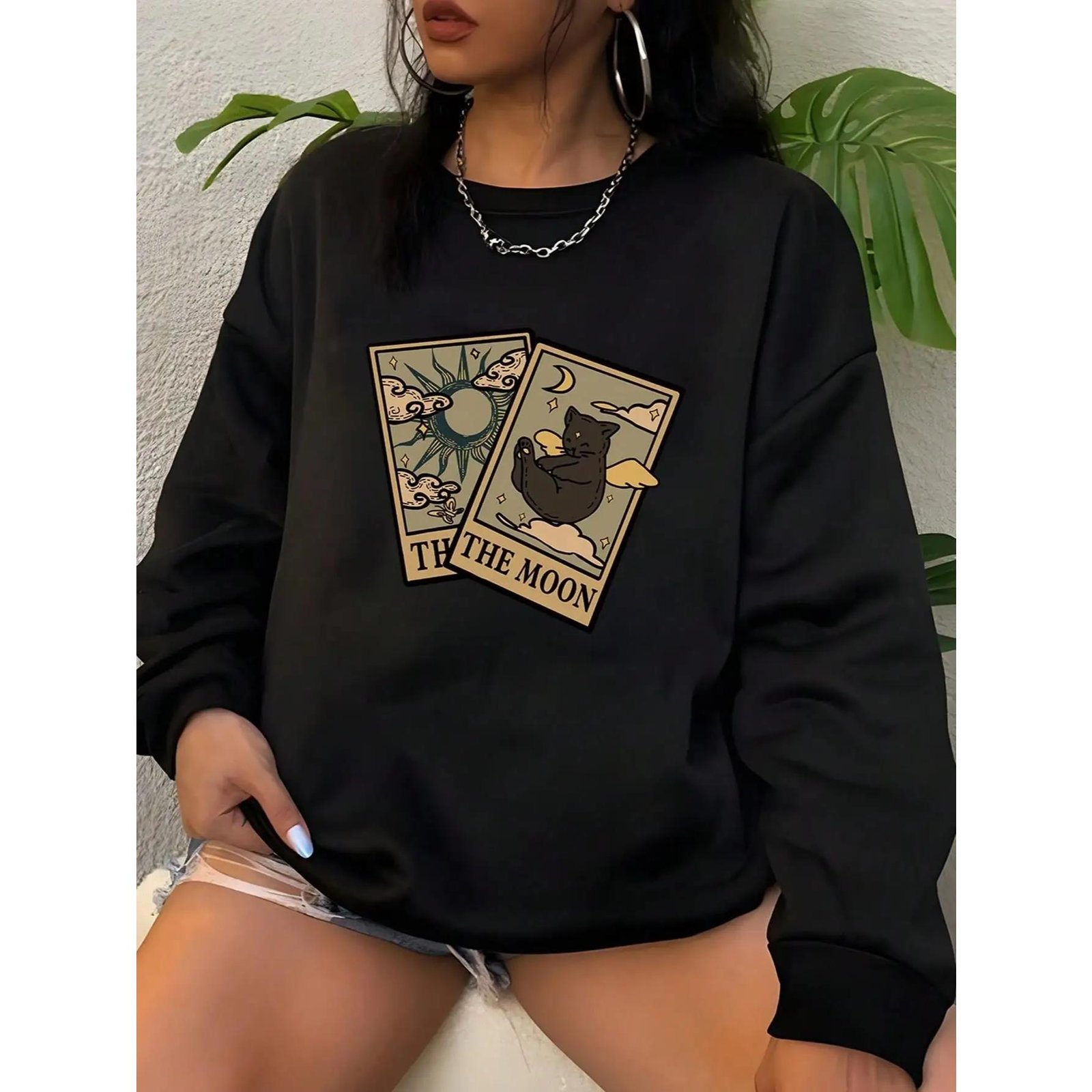 Embrace your mystical side with this Vintage Tarot Bear & Moon Hoodie. This women’s sweatshirt features a captivating tarot-inspired print with a bear and moon design, perfect for those who love unique and artistic fashion. The fleece interior provides cozy warmth, while the loose fit and crewneck make it ideal for layering or wearing on its own. This hoodie is a must-have for any streetwear collection, offering both comfort and style with a touch of vintage charm.