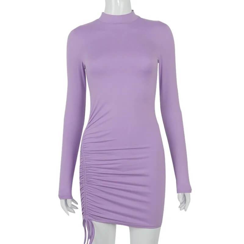 Unleash your inner fashionista with our Women’s Turtleneck Ruched Mini Dress, featuring long sleeves and a black skinny bodycon fit. The ruched details add texture and interest, making this dress perfect for autumn. The stretchy fabric ensures a snug yet comfortable fit, allowing you to showcase your curves with confidence.